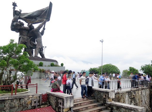 Tại khu Di tích Tượng đài Chiến thắng Điện Biên Phủ (đặt trên đồi D1), trên trục hành lễ cao 320 bậc đấu nối tuyến đường Võ Nguyễn Giáp với tượng đài luôn đông kín người.