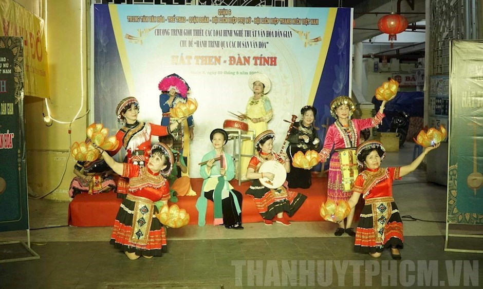 Biểu diễn nghệ thuật văn hóa dân gian Hát Then - Đàn tính(Thanhuytphcm.vn) - Những năm qua, các di sản văn hóa, đặc biệt là di sản văn hóa phi vật thể được nhận diện giá trị, bảo tồn và phát huy, đã góp phần không nhỏ vào việc giáo dục lịch sử, vun đắp truyền thống tốt đẹp của dân tộc. Nhằm giới thiệu các loại hình nghệ thuật văn hóa dân gian dân tộc truyền thống, tôn vinh giá trị văn hóa phi vật thể, đáp ứng nhu cầu hưởng thụ văn hóa nghệ thuật đến đông đảo quần chúng nhân dân, Trung tâm Văn hóa – Thể thao Quận 6 đã triển khai thực hiện hiệu quả mô hình: “Hành trình qua các di sản văn hóa”.
