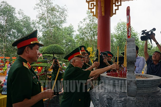 Thắp hương tưởng niệm anh hùng, liệt sĩ và nhân dân hy sinh tại căn cứ Đồng Dù(Thanhuytphcm.vn) - Sáng 26/4, Sư đoàn bộ binh 9, Quân đoàn 4 phối hợp Ban liên lạc truyền thống Đại đoàn Đồng Bằng – Sư đoàn 320 tổ chức Lễ khánh thành Nhà bia lưu niệm chiến thắng căn cứ Đồng Dù, tại huyện Củ Chi.