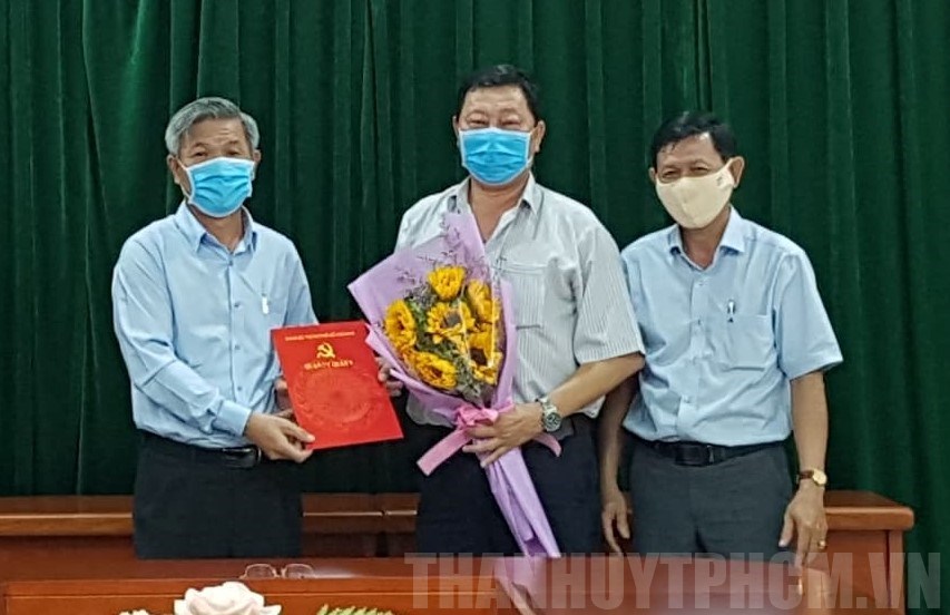 Đồng chí Cao Văn Minh, Phó Bí thư Thường trực Quận ủy trao quyết định và tặng hoa chúc mừng đồng chí Phạm Quang Bửu(Thanhuytphcm.vn) - Chiều 1/4, Thường trực Quận ủy Quận 9 đã tổ chức công bố Quyết định công nhận Ủy viên Ban Thường vụ Đảng ủy, Bí thư Đảng ủy cơ quan Đảng, đoàn thể quận nhiệm kỳ 2015 - 2020 đối với đồng chí Phạm Quang Bửu, Ủy viên Ban Thường vụ Quận ủy, Chủ tịch Ủy ban Mặt trận Tổ quốc Việt Nam Quận 9. Tham dự buổi công bố quyết định có các đồng chí Cao Văn Minh, Phó Bí thư Thường trực Quận ủy; Võ Minh Hùng, Ủy viên Thường vụ, Trưởng Ban Tổ chức Quận ủy.