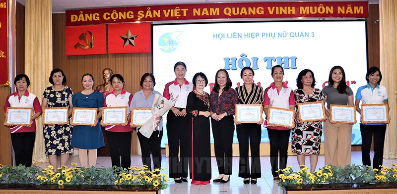 Ban tổ chức trao giải cho các thí sinh.(Thanhuytphcm.vn) - Chiều 11/8, Hội Liên hiệp Phụ nữ (LHPN) Việt Nam Quận 3 tổ chức hội thi Cán bộ Hội Phụ nữ cơ sở giỏi năm 2023.