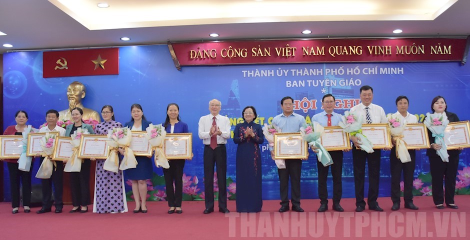 Tại hội nghị, đồng chí Nguyễn Võ Cường, Trưởng Phòng Lý luận chính trị - Lịch sử Đảng, Ban Tuyên giáo Thành ủy TPHCM vinh dự được nhận Bằng khen của Thủ tướng Chính phủ. Dịp này, 23 tập thể hoàn thành xuất sắc nhiệm vụ được tặng Bằng khen của Ban Thường vụ Thành ủy TPHCM. Ban Tuyên giáo Thành ủy TPHCM cũng tặng Giấy khen cho 42 tập thể hoàn thành xuất sắc nhiệm vụ năm 2023.