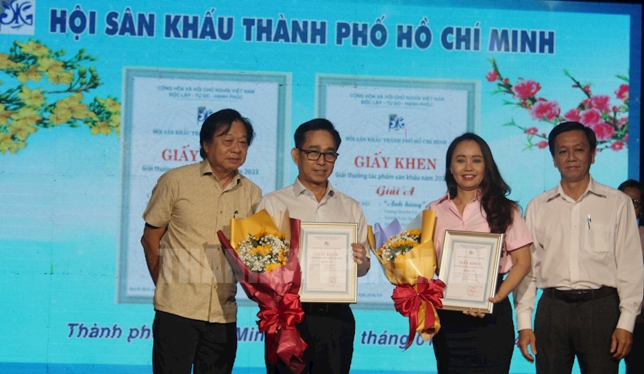 Trao 2 giải A giải thưởng Hội Sân khấu TPHCM 2023(Thanhuytphcm.vn) - Ngày 26/1, Hội Sân khấu TPHCM tổ chức tổng kết và trao các giải thưởng sân khấu năm 2023. Đến dự có các đồng chí: Phó Trưởng Ban Tuyên giáo Thành ủy TPHCM Nguyễn Thọ Truyền; Chủ tịch Liên hiệp các Hội Văn học nghệ thuật TPHCM Nguyễn Trường Lưu; Chủ tịch Hội Sân khấu TPHCM Trần Ngọc Giàu…