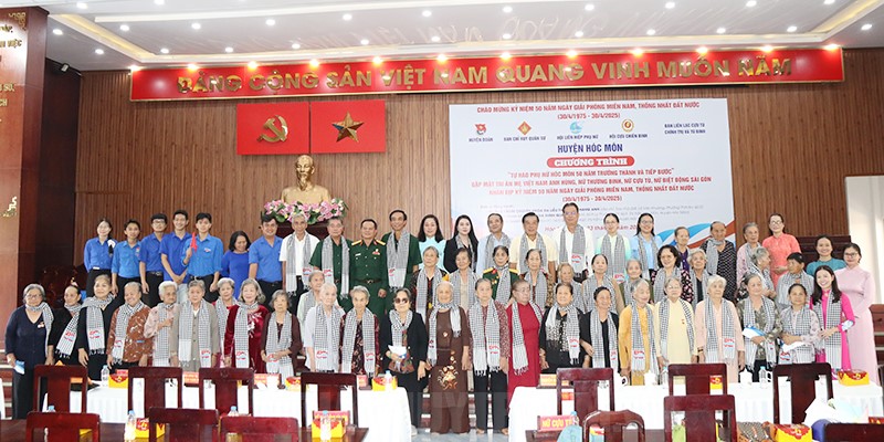 (Thanhuytphcm.vn) – Nhân dịp kỷ niệm 50 năm Ngày giải phóng miền Nam, thống nhất đất nước (30/4/1975 – 30/4/2025), ngày 23/4, Hội Liên hiệp Phụ nữ huyện Hóc Môn phối hợp Ban Chỉ huy Quân sự huyện, Huyện Đoàn, Hội Cựu chiến binh huyện, Ban Liên lạc Cựu tù chính trị và tù binh huyện tổ chức chương trình “Tự hào phụ nữ Hóc Môn 50 năm trưởng thành và tiếp bước”; gặp mặt tri ân Mẹ Việt Nam Anh hùng, nữ thương binh, nữ cựu tù, nữ biệt động Sài Gòn.