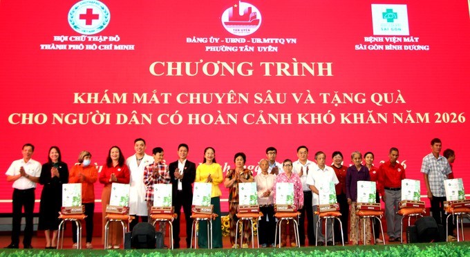 Sáng 29/1, Hội Chữ thập đỏ TPHCM phối hợp với Bệnh viện mắt Sài Gòn Bình Dương tổ chức chương trình khám mắt chuyên sâu và tặng quà cho hộ nghèo, có hoàn cảnh khó khăn và người cao tuổi ở phường Tân Uyên.