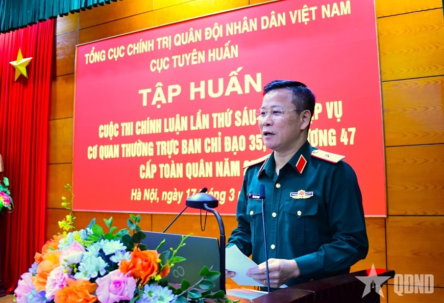 Ngày 17/3, Cục Tuyên huấn (Tổng cục Chính trị) tổ chức Hội nghị tập huấn Cuộc thi chính luận lần thứ sáu và nghiệp vụ Cơ quan Thường trực Ban chỉ đạo 35, Lực lượng 47 cấp toàn quân năm 2026. Thiếu tướng Tống Văn Thanh, Phó cục trưởng Cục Tuyên huấn (Tổng cục Chính trị) dự và phát biểu khai mạc hội nghị tập huấn.