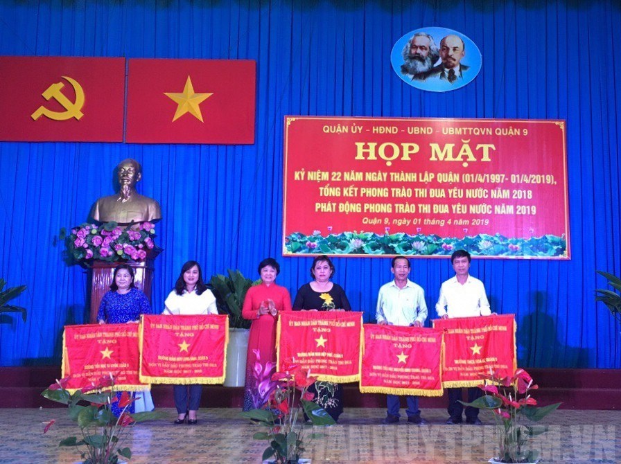 Cập nhật 09:52 02-04-2019Quận 9: Tiếp tục đổi mới, đẩy mạnh phong trào thi đua yêu nước(Thanhuytphcm.vn) – Sáng 1/4, UBND Quận 9 tổ chức hội nghị tổng kết phong trào thi đua yêu nước năm 2018, phát động phong trào thi đua yêu nước năm 2019 và kỷ niệm 22 năm ngày thành lập quận (1/4/1997 – 01/4/2019). Tham dự hội nghị có các đồng chí: Phan Nguyễn Như Khuê, Phó Trưởng đoàn chuyên trách Đoàn Đại biểu Quốc hội TPHCM; Hoàng Nghĩa Huỳnh, Phó Trưởng Ban thi đua khen thưởng Thành phố; Đặng Thị Hồng Liên, Bí thư Quận ủy, Chủ tịch Hội đồng nhân dân quận; Trần Văn Bảy, Phó Bí thư, Chủ tịch UBND quận.