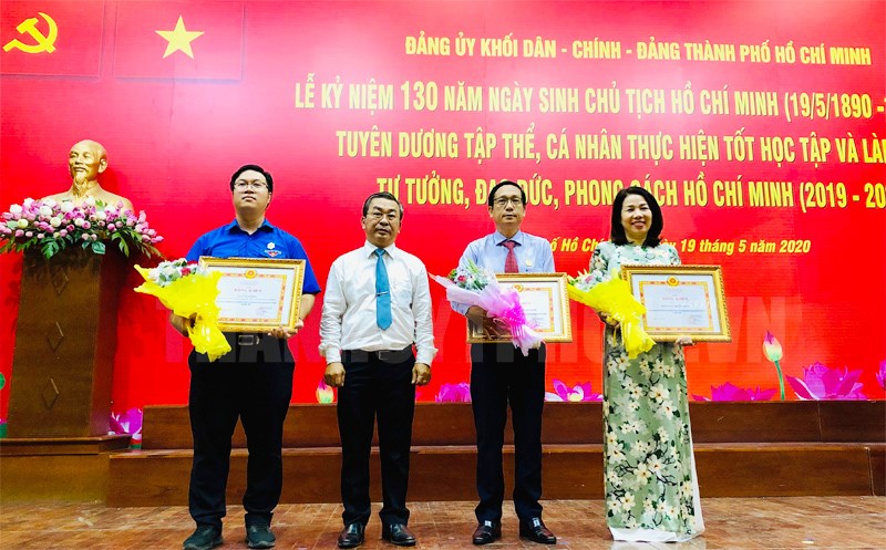 (Thanhuytphcm.vn) – Sáng 19/5, Đảng ủy Khối Dân – Chính – Đảng TP tổ chức lễ kỷ niệm 130 năm Ngày sinh Chủ tịch Hồ Chí Minh (19/5/1890 - 19/5/2020); tuyên dương tập thể, cá nhân thực hiện tốt học tập và làm theo tư tưởng, đạo đức, phong cách Hồ Chí Minh (2019-2020). Đến dự có Thành ủy viên, Bí thư Đảng ủy Khối Dân – Chính – Đảng TP Võ Ngọc Quốc Thuận.