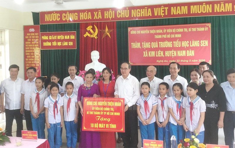 Bí thư Thành ủy TPHCM Nguyễn Thiện Nhân thăm, tặng quà Trường Tiểu học Làng Sen và gia đình chính sách tại Nghệ An