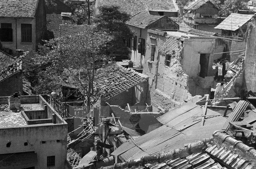 Ngày 26/12/1972, Mỹ dùng máy bay ném bom chiến lược B-52 ném bom phố Khâm Thiên, làm cho gần 2.000 ngôi nhà bị đánh sập, cướp đi 283 sinh mạng, làm bị thương 266 người. Người dân phố Khâm Thiên thường gọi sự kiện này là Đêm B-52. (Ảnh: TTXVN)