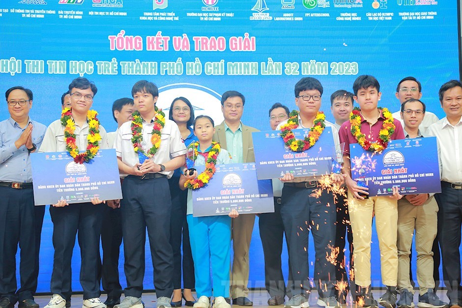 Ban tổ chức trao thưởng 4 giải nhất Hội thi Tin học trẻ TPHCM lần thứ 32(Thanhuytphcm.vn) – Ngày 10/6, Hội thi Tin học trẻ TPHCM lần thứ 32 - năm 2023 đã tổng kết và trao giải cho các cá nhân và tập thể xuất sắc.