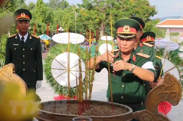 Đại diện lãnh đạo Quân khu 9 dâng hương tưởng nhớ các Anh hùng liệt sỹ tại Nghĩa trang Liệt sỹ Dốc Bà Đắc. (Ảnh: TTXVN)Sáng 24/7, tại Nghĩa trang liệt sỹ Dốc Bà Đắc, xã Thới Sơn, huyện Tịnh Biên, tỉnh An Giang, Quân khu 9 phối hợp với tỉnh An Giang tổ chức lễ an táng 172 hài cốt liệt sỹ hy sinh qua các thời kỳ chiến tranh.