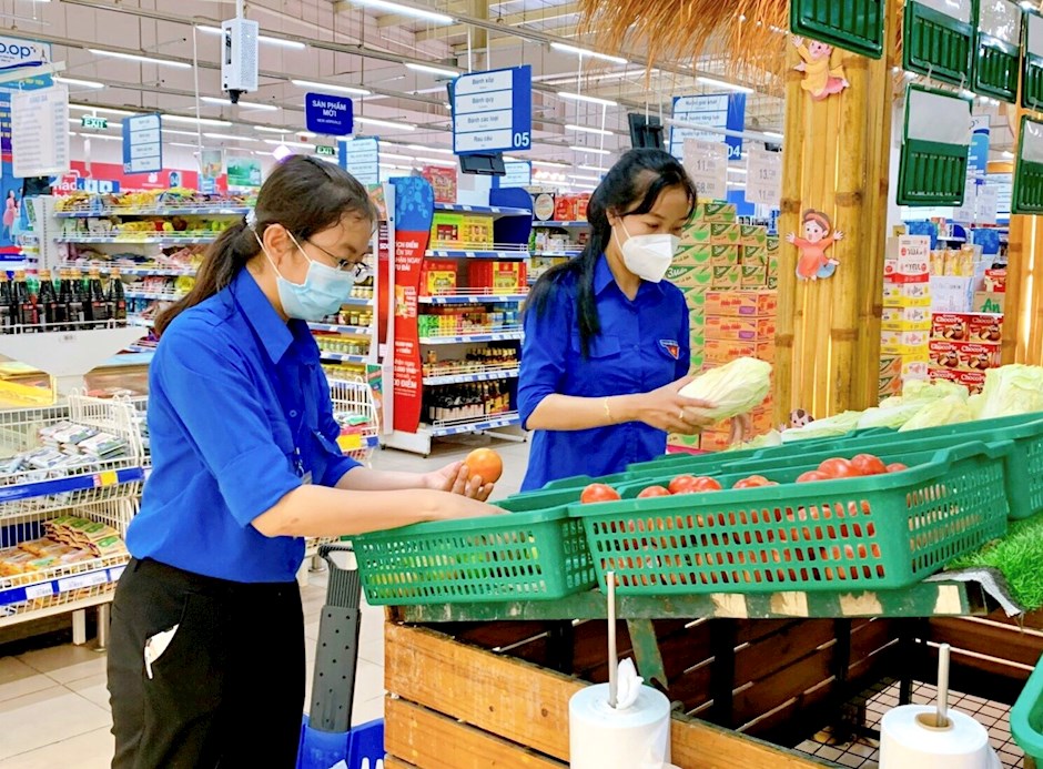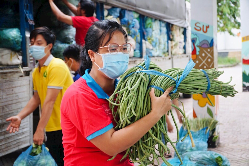 Chị Trần Thị Thanh Huyền trao gạo cho người dân khó khăn ở xã Đông ThạnhTrong đó, nổi bật có mô hình “Shipper xanh” của Đoàn Thanh niên xã Đông Thạnh, hỗ trợ vận chuyển lương thực, thực phẩm đến các khu phong tỏa, người dân có hoàn cảnh khó khăn, các chốt trực trên địa bàn bằng những phương tiện được huy động tại chỗ như xe ba gác, xe máy, xe bán tải…; qua đó vận chuyển hơn 200 tấn gạo, 15 tấn rau, 20 tấn nhu yếu phẩm, trao gần 1.500 túi an sinh đến từng hộ dân. Hay như mô hình “Quầy hàng cho bạn” ở Đoàn Thanh niên xã Xuân Thới Thượng, bán các mặt hàng nhu yếu phẩm 0 đồng, hỗ trợ hơn 600 người dân khó khăn, ảnh hưởng bởi dịch bệnh trên địa bàn xã. Hoặc mô hình “Tiếng loa tuyên truyền” của Đoàn Thanh niên thị trấn Hóc Môn, thực hiện từ ngày 19/6, đều đặn 2 lần/ngày, các xe loa chạy quanh các tuyến hẻm, đường chính trên địa bàn để tuyên truyền về tình hình dịch bệnh, các quy định về công tác phòng chống dịch…