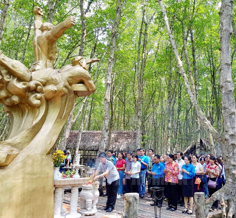 Các đại biểu dâng hương, dâng hoa tưởng niệm các anh hùng liệt sĩ tại Tượng đài chiến sĩ đặc công Rừng Sác.(Thanhuytphcm.vn) - Ngày 22/3, Liên đoàn Lao động TPHCM đã tổ chức về nguồn tại Khu di tích lịch sử căn cứ Rừng Sác Cần Giờ, TPHCM cho 150 cán bộ Công đoàn phụ trách nữ công nhân dịp kỷ niệm 70 năm Thành lập Ban Nữ công Công đoàn Việt Nam.