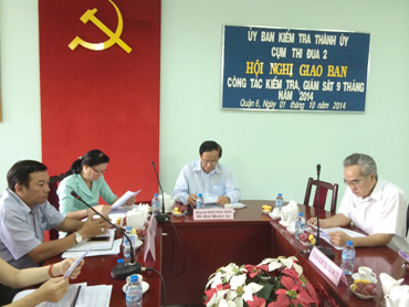 Chiều 1/10, tại Quận ủy quận 6, Ủy ban Kiểm tra Thành ủy TPHCM tổ chức sơ kết công tác kiểm tra, giám sát 9 tháng năm 2014 của Cụm thi đua 2 (gồm các Quận: 4, 6, 8, Phú Nhuận, Gò Vấp, Bình Thạnh, Tân Phú), kết hợp sinh hoạt chuyên đề “Nâng cao chất lượng giải quyết tố cáo đối với tổ chức đảng và đảng viên”. Đến dự có các đồng chí: Nguyễn Châu Cảm, Ủy viên Ủy ban Kiểm tra Thành ủy; Phan Ngọc Minh, Bí thư Quận ủy quận 6.