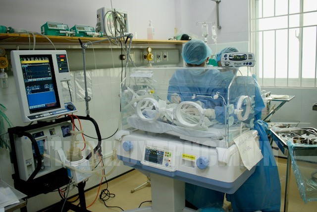 Nhận định đây là trường hợp sinh non, bé bị suy hô hấp nặng. Các bác sĩ đã cho bé thở áp lực dương qua mũi (NCPAP), đặt nội khí quản và bơm 3 lọ thuốc giúp trưởng thành phổi. Ngay sau khi được can thiệp, tình trạng suy hô hấp của bé được cải thiện rõ rệt.