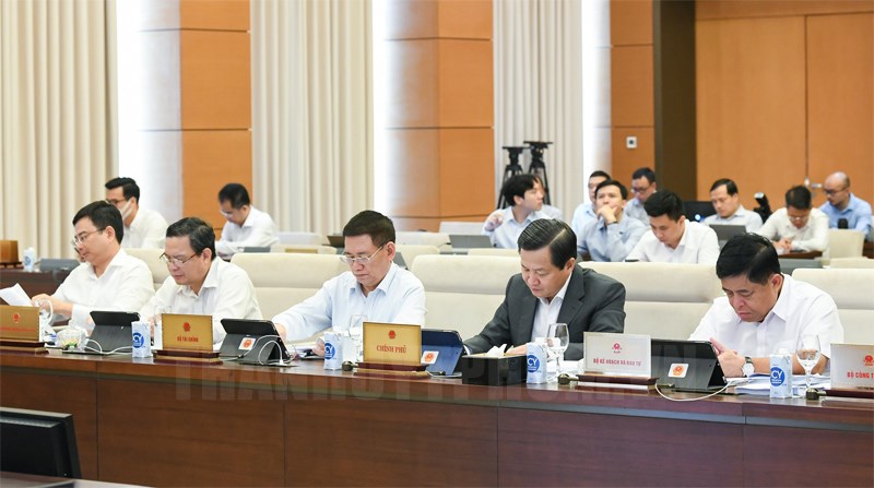 Các đại biểu tham dự phiên họp(Thanhuytphcm.vn) - Tiếp tục chương trình phiên họp 16, ngày 11/10, tại Nhà Quốc hội, Ủy ban Thường vụ Quốc hội (UBTVQH) cho ý kiến về các báo cáo của Chính phủ, gồm: tình hình thực hiện kế hoạch phát triển kinh tế - xã hội và dự toán ngân sách nhà nước năm 2022, kế hoạch phát triển kinh tế - xã hội năm 2023; dự toán ngân sách nhà nước và phương án phân bổ ngân sách trung ương năm 2023 (tỷ lệ phần trăm phân chia giữa ngân sách trung ương và ngân sách địa phương giai đoạn 2023-2025); kết quả thực hiện kế hoạch đầu tư công năm 2022; dự kiến kế hoạch đầu tư công năm 2023.