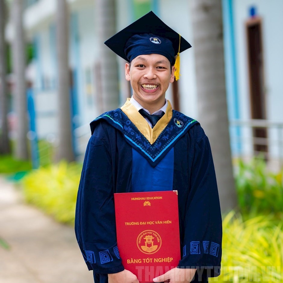 Phan Tích Thiện ngày nhận Bằng tốt nghiệp tại Trường Đại học Văn Hiến TPHCM(Thanhuytphcm.vn) - Năm 2019 là một năm đặc biệt với sinh viên Phan Tích Thiện của ngành Xã hội học, Trường Đại học Văn Hiến TPHCM. Đặc biệt bởi vì dù bị khuyết tật não từ khi được sinh ra, ảnh hưởng trực tiếp đến chức năng nói và hoạt động của hai tay, nhưng bằng nỗ lực vượt bậc của mình và sự tận tâm giúp đỡ của các thầy cô ở các cấp học, Thiện không những đỗ đại học mà còn tốt nghiệp loại khá. Câu chuyện của Thiện một lần nữa minh chứng cho sự quan tâm của cộng đồng để không ai bị bỏ lại ở phía sau.