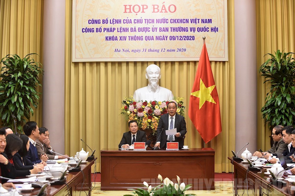 Quang cảnh họp báo(Thanhuytphcm.vn) - Sáng 31/12, Văn phòng Chủ tịch nước tổ chức họp báo công bố lệnh của Chủ tịch nước về công bố Pháp lệnh Ưu đãi người có công với cách mạng. Pháp lệnh được Ủy ban Thường vụ Quốc hội thông qua ngày 9/12/2020 và có hiệu lực từ ngày 1/7/2021.
