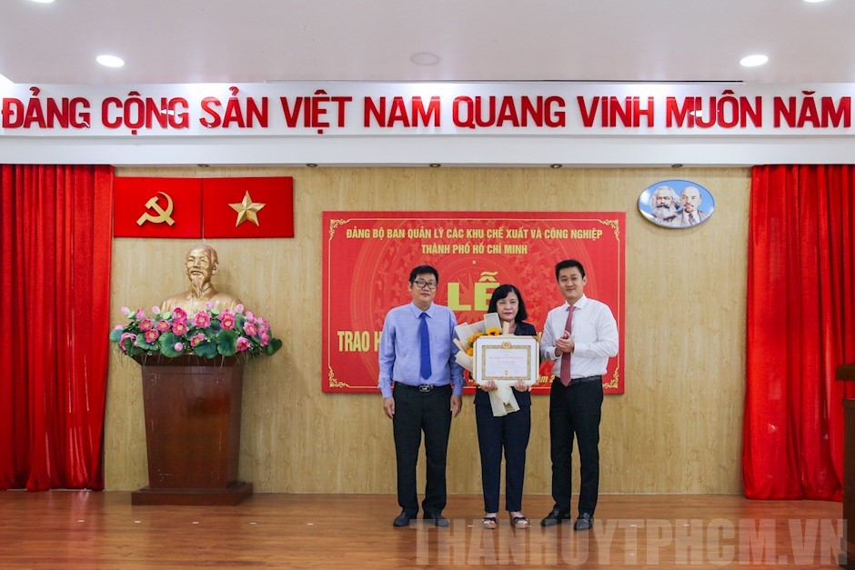 Tại buổi lễ đồng chí Phạm Văn Nhàn, Trưởng ban Ban Tổ chức Đảng ủy BQL các KCX và CN TP đã thông qua Quyết định của Ban Thường vụ Thành ủy về tặng Huy hiệu 40 năm tuổi Đảng cho đồng chí Lê Thị Ngọc Thiện, Ủy viên Ban Chấp hành Đảng bộ KCN Tây Bắc Củ Chi; Bí thư Chi bộ Công ty TNHH Hansae VN.