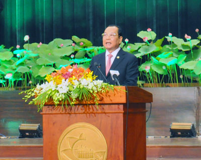 Năm nay là năm bản lề thực hiện Nghị quyết Đại hội XI của Đảng và Nghị quyết Đại hội IX Đảng bộ thành phố, nhân dân đang tin tưởng, mong đợi và đòi hỏi chúng ta về nêu cao tính tiền phong, gương mẫu, đáp ứng yêu cầu của nhân dân và của chính chúng ta. Hãy cùng nhau hứa quyết tâm giữ vững, phát huy thành quả và truyền thống cách mạng, nguyện tiếp tục ra sức xây dựng, bảo vệ và phát triển thành phố văn minh, hiện đại, nghĩa tình, vững bước đi lên xã hội chủ nghĩa.