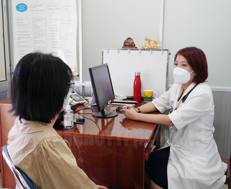 Bác sĩ tư vấn cho bệnh nhân.(Thanhuytphcm.vn) – Ngày 25/4, Thạc sĩ Bác sĩ Doãn Uyên Vy, Phụ trách Phòng khám Chống độc Bệnh viện Chợ Rẫy cho biết đơn vị vừa điều trị, giải độc thành công cho nữ bệnh nhân N.T.H, 27 tuổi, ngụ tỉnh Đắk Lắk bị nhiễm độc kim loại nặng từ thuốc nam do tự ý chuyển sang dùng thuốc nam.