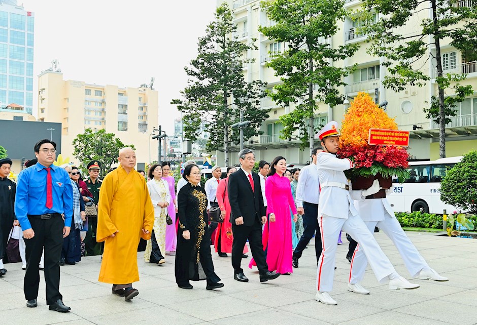 Đoàn đại biểu dự Đại hội đại biểu MTTQ Việt Nam TPHCM lần thứ I dâng hoa tưởng nhớ Chủ tịch Hồ Chí Minh. (Ảnh: SGGP)Sáng 28/11, Đoàn biểu tham dự Đại hội đại biểu MTTQ Việt Nam TPHCM lần thứ I, nhiệm kỳ 2025 - 2030 do đồng chí Nguyễn Phước Lộc, Phó Bí thư Thành ủy, Chủ tịch Ủy ban MTTQ Việt Nam TPHCM làm trưởng đoàn, dâng hoa Chủ tịch Hồ Chí Minh, tại Công viên Tượng đài Chủ tịch Hồ Chí Minh (đường Nguyễn Huệ, phường Sài Gòn).