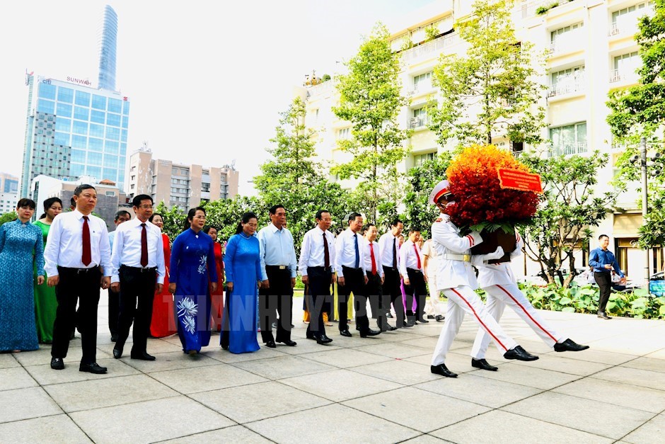 Bí thư Thành ủy TPHCM Nguyễn Văn Nên dâng hoa lên Chủ tịch Hồ Chí Minh tại Công viên Tượng đài Chủ tịch Hồ Chí Minh