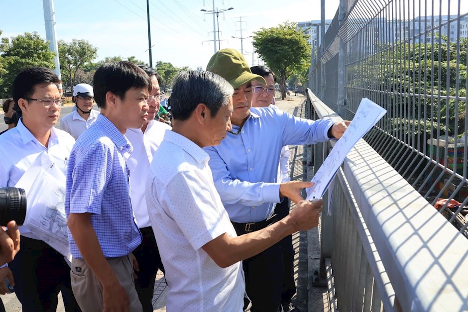 Đoàn đã tiến hành kiểm tra thực tế tại khu đất số 4, đường Phan Chu Trinh; khu vực Trường Đại học Văn Lang – thuộc gói thầu XL-03 và khu vực cầu Rạch Lăng trên đường Phạm Văn Đồng.