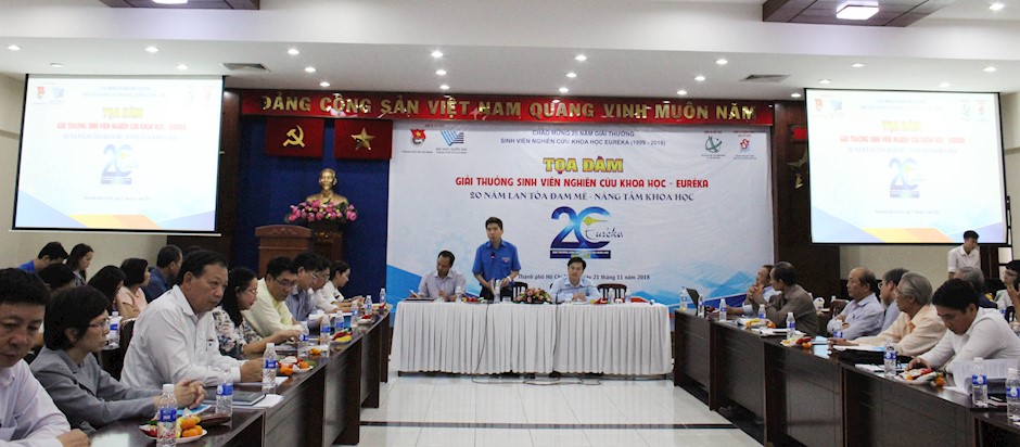 Tọa đàm Giải thưởng Sinh viên nghiên cứu khoa học - Euréka “20 năm lan toả đam mê - Nâng tầm khoa học”(Thanhuytphcm.vn) - Từ ý tưởng ban đầu là Chương trình Euréka tài trợ các nhà nghiên cứu trẻ thuộc Quỹ học bổng “Vì ngày mai phát triển” của Báo Tuổi Trẻ (năm học 1990 - 1991), đến năm 1998 với sự gia tăng về số lượng và chất lượng đề tài của các nhà nghiên cứu trẻ, Thành đoàn TPHCM phối hợp với Đại học Quốc gia TPHCM nâng cấp chương trình thành giải thưởng mang tên Euréka khuyến khích nghiên cứu khoa học trong cộng đồng sinh viên TP.