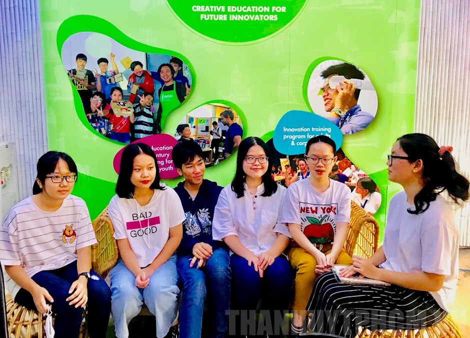 Các em học sinh thuyết trình về dự án của mình(Thanhuytphcm.vn) - Ngày 8/3, Sở Khoa học và Công nghệ TPHCM, Saigon Innovation Hub phối hợp Mạng lưới nhà đầu tư thiên thần Việt Nam và Học viện sáng tạo Arkki tổ chức hội thi thuyết trình dự án cho Top 20 nhóm học sinh với gần 100 em đã tham gia 2 tháng ươm tạo dự án xã hội FutureU.