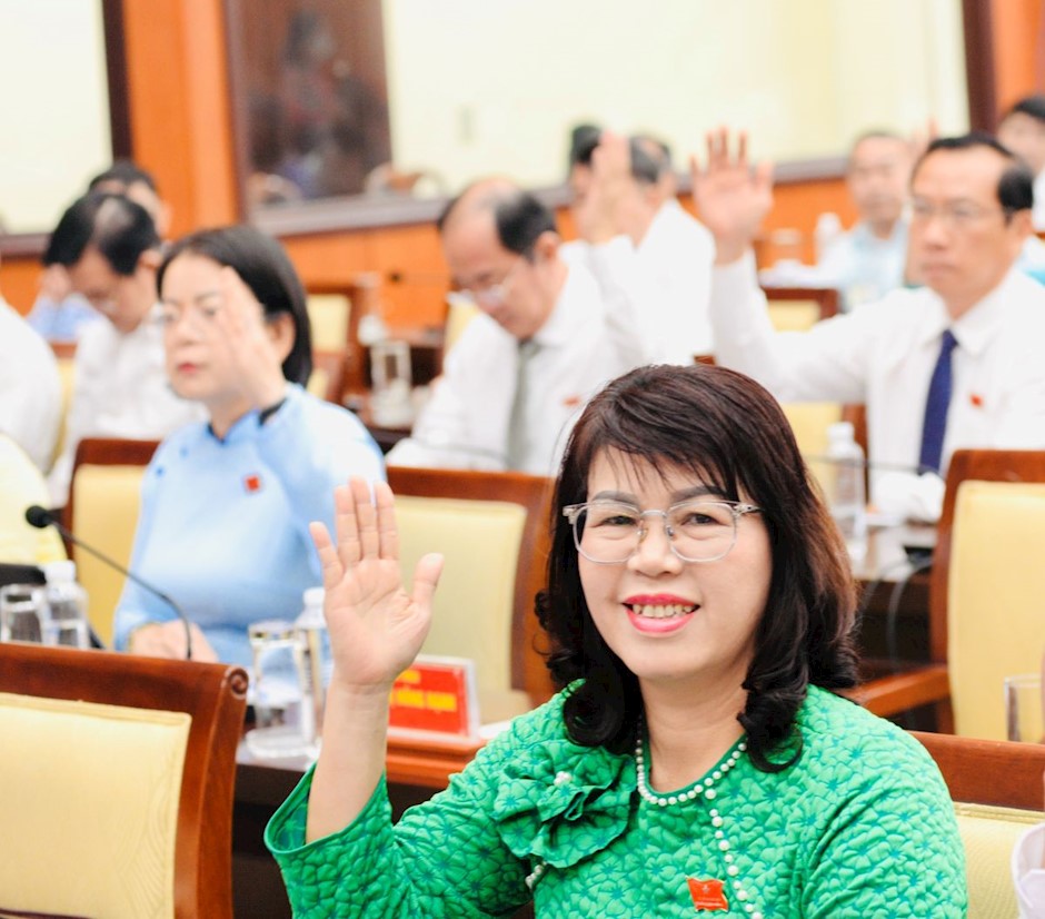 Các đại biểu đã biểu quyết thông qua tại kỳ họp(Thanhuytphcm.vn) - Tiếp tục kỳ họp thứ 21 (kỳ họp chuyên đề) HĐND TPHCM khóa X, nhiệm kỳ 2021-2026, chiều 20/2, đại biểu HĐND TPHCM đã thông qua Nghị quyết quy định về chế độ hỗ trợ thêm đối với cán bộ, công chức, viên chức, người lao động khi thực hiện sắp xếp bộ máy, cơ cấu lại và sắp xếp đơn vị hành chính; người phụ trách công tác Đảng tại doanh nghiệp 100% vốn nhà nước và trường hợp không đủ điều kiện về tuổi tái cử, tái bổ nhiệm giữ chức vụ, chức danh theo nhiệm kỳ.