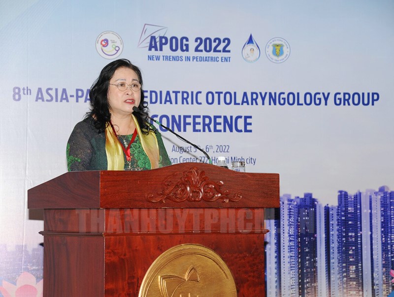 PGS.TS.BS Nguyễn Thị Ngọc Dung - Chủ tịch APOG thứ 8 phát biểu tại hội nghị.(Thanhuytphcm.vn) - Ngày 6/8, tại TPHCM đã diễn ra Hội nghị Tai mũi họng Nhi châu Á - Thái Bình Dương lần thứ 8 (APOG 2022), chủ đề "Các xu hướng mới trong tai mũi họng Nhi khoa”. Đây là lần đầu tiên hội nghị được tổ chức tại Việt Nam với các chuyên đề về đường thở trẻ em rất thiết thực, hữu ích.
