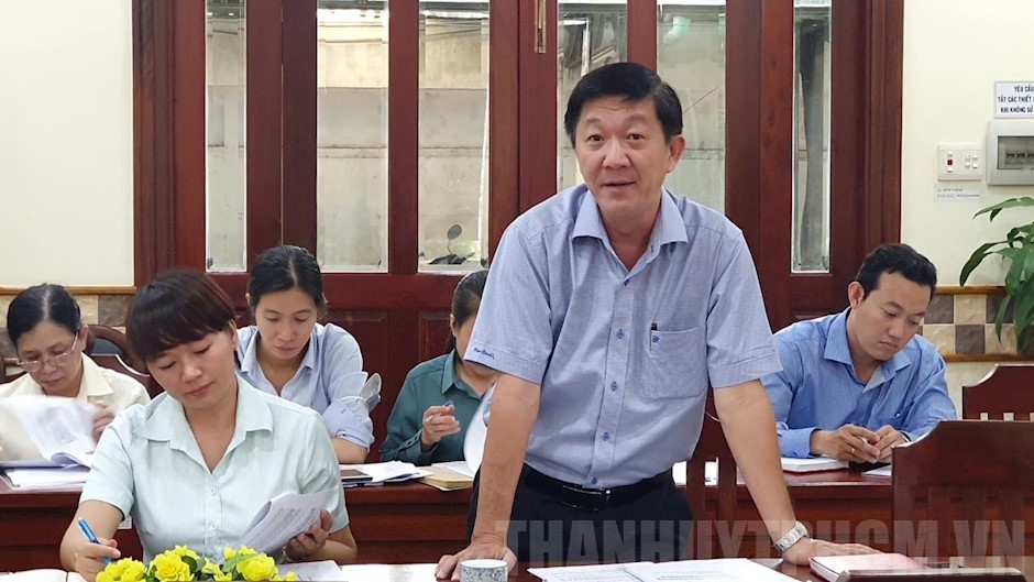 Đồng chí Bùi Ngọc Quý, Trưởng Phòng Văn hóa Thông tin huyện Hóc Môn thông tin tại cuộc họp(Thanhuytphcm.vn) - Chiều 19/4, đồng chí Lê Thụy Mỵ Châu, Huyện ủy viên, Phó Chủ tịch UBND huyện Hóc Môn đã chủ trì cuộc họp báo cáo kết quả 2 năm thực hiện Đề án số 01-ĐA/HU ngày 08/4/2021 của Huyện ủy về “Phát triển du lịch huyện Hóc Môn giai đoạn 2020 - 2025, tầm nhìn đến năm 2030”.