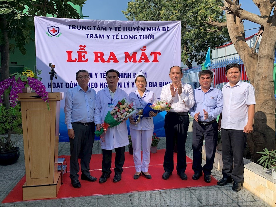 Lãnh đạo Sở Y tế TP và huyện Nhà Bè trao hoa chúc mừng ra mắt Trạm Y tế xã Long Thới chính thức đổi mới hoạt động theo nguyên lý Y học gia đình(Thanhuytphcm.vn) - Sáng 12/11, Trung tâm Y tế huyện Nhà Bè đã tổ chức Lễ ra mắt Trạm Y tế mô hình điểm hoạt động theo nguyên lý y học gia đình tại Trạm Y tế xã Long Thới.