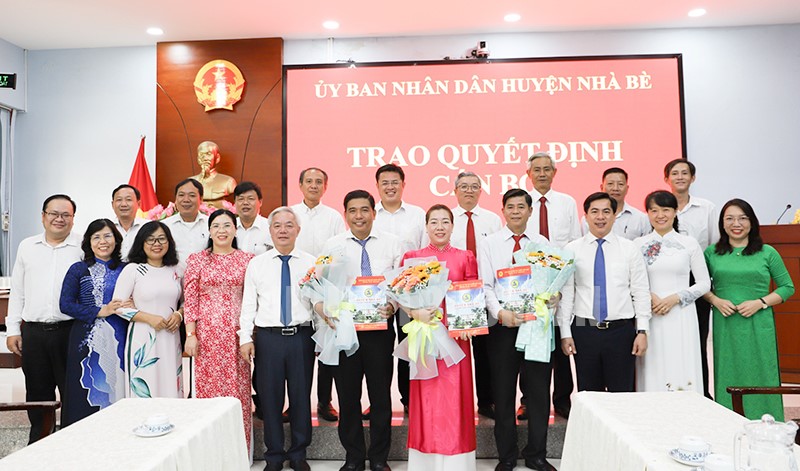 Tại buổi lễ, Phòng Nội vụ huyện Nhà Bè đã công bố các quyết định của Chủ tịch UBND huyện về điều động đồng chí Võ Văn Chiến, Phó Trưởng Phòng Giáo dục và Đào tạo huyện Nhà Bè đến công tác tại Phòng Lao động - Thương binh và Xã hội huyện Nhà Bè và bổ nhiệm giữ chức vụ Phó Trưởng Phòng Lao động - Thương binh và Xã hội huyện Nhà Bè, thời hạn giữ chức vụ là 5 năm, kể từ ngày 1/7/2023; bổ nhiệm lại đối với đồng chí Phạm Văn Quí, Phó Trưởng Phòng Kinh tế huyện Nhà Bè, tiếp tục giữ chức vụ Phó Trưởng Phòng Kinh tế huyện Nhà Bè, thời hạn giữ chức vụ là 5 năm, kể từ ngày 25/4/2023; bổ nhiệm lại đối với đồng chí Nông Thị Kim Mai, Phó Trưởng Phòng Văn hóa và Thông tin huyện Nhà Bè tiếp tục giữ chức vụ Phó Trưởng Phòng Văn hóa và Thông tin huyện Nhà Bè, thời hạn giữ chức vụ là 5 năm, kể từ ngày 6/8/2023.