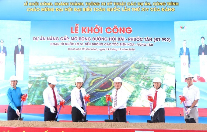 Thực hiện nghi thức khởi công dự án nâng cấp, mở rộng đường Hội Bài - Phước TânSáng 19/12, tại phường Tân Hải, TPHCM, đã diễn ra lễ khởi công Dự án nâng cấp, mở rộng đường Hội Bài – Phước Tân (ĐT992), đoạn từ quốc lộ 51 đến cao tốc Biên Hòa – Vũng Tàu. Đây là công trình giao thông trọng điểm, được kỳ vọng tăng cường kết nối hạ tầng, giảm áp lực giao thông và thúc đẩy phát triển kinh tế - xã hội khu vực Đông Nam bộ.