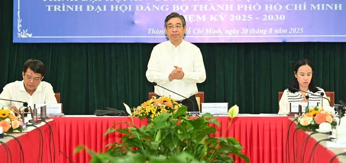 Đồng chí Nguyễn Phước Lộc chủ trì hội nghị lấy ý kiến. (Ảnh: SGGP)Chiều 20/8, Ban Thường vụ Thành ủy TPHCM tổ chức hội nghị lấy ý kiến góp ý của các tổ chức chính trị - xã hội thành phố về dự thảo các văn kiện Đại hội XIV của Đảng và báo cáo chính trị Đại hội Đảng bộ TPHCM lần thứ I, nhiệm kỳ 2025-2030.
