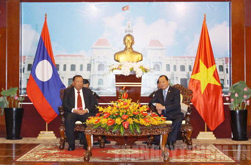 Bí thư Thành ủy TPHCM Lê Thanh Hải tiếp đồng chí Bun Nhăng Vô La Chít, Phó Chủ tịch nước Cộng hòa dân chủ nhân dân Lào. (Ảnh: Thanh Vũ)