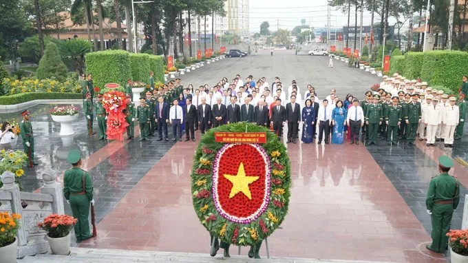 Trong không khí trang nghiêm, các đại biểu thành kính dâng vòng hoa, thắp hương trước Tượng đài Tổ quốc ghi công và dành phút mặc niệm tưởng nhớ công lao to lớn của các anh hùng liệt sĩ đã anh dũng đấu tranh, hy sinh vì sự nghiệp giải phóng dân tộc, thống nhất đất nước.