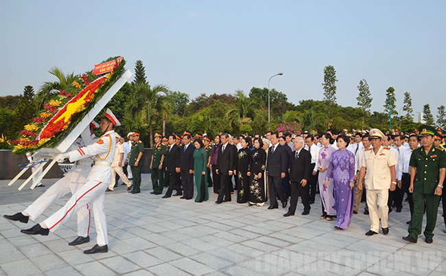 (Thanhuytphcm.vn)- Kỷ niệm 40 năm Ngày giải phóng miền Nam, thống nhất đất nước (30/4/1975 - 30/4/2015), Đoàn đại biểu Thành ủy, HĐND, UBND, Ủy ban MTTQ Việt Nam TPHCM do Ủy viên Bộ Chính trị, Bí thư Thành ủy TPHCM Lê Thanh Hải dẫn đầu đã đến viếng Nghĩa trang Liệt sĩ TPHCM.
