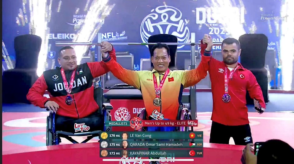 Tại Paralympic 2020, Lê Văn Công và Omar Qarada từng có màn tranh tài vô cùng kịch tính, khi cả hai cùng nâng thành công mức tạ 173kg. Tuy nhiên, nhờ trọng lượng cơ thể nhẹ hơn lực sĩ Việt Nam... 100 gram mà Omar Qarada đã đoạt HCV, còn Lê Văn Công ngậm ngùi nhận HCB.