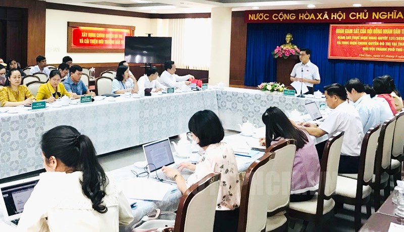 Báo cáo với đoàn giám sát, Trưởng phòng Nội vụ TP Thủ Đức Phạm Hoa Mai cho biết, việc thực hiện Nghị quyết 131 của Quốc hội về tổ chức chính quyền đô thị tại TPHCM tại TP Thủ Đức đã được UBND TP Thủ Đức nỗ lực sắp xếp, tổ chức bộ máy đi vào hoạt động nhanh chóng, ổn định; duy trì các hoạt động thường xuyên, hạn chế đến mức thấp nhất ảnh hưởng đến hoạt động của cơ quan và đời sống sinh hoạt hàng ngày của người dân. TP Thủ Đức cũng chủ động rà soát và nghiên cứu các quy định để đề xuất các nội dung phân cấp, ủy quyền từ TPHCM, cũng như các vấn đề cần đề xuất Trung ương để có những điều chỉnh, chỉ đạo triển khai phù hợp với điều kiện phát triển của TP Thủ Đức; hoàn thành việc tham mưu đề xuất Thành ủy TPHCM dự thảo Nghị quyết phương hướng, nhiệm vụ phát triển TP Thủ Đức giai đoạn 2021 - 2025, định hướng đến năm 2030.