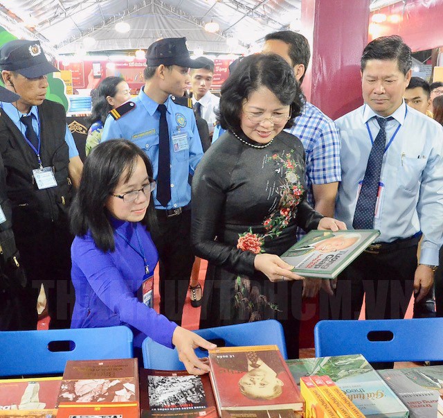 Phó Chủ tịch nước Đặng Thị Ngọc Thịnh (thứ 2 từ phải qua) tham quan Hội sách TPHCM.