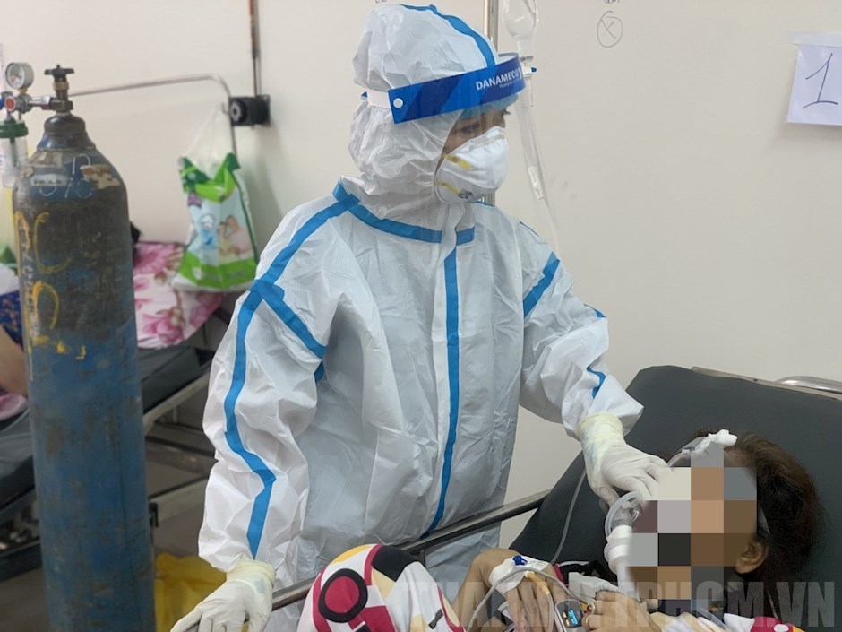 BS.CK1 Trần Ngọc Hoàng Dung chăm sóc bệnh nhân(Thanhuytphcm.vn) - Bác sĩ Trần Ngọc Hoàng Dung - Đội trưởng Đội cấp cứu Bệnh viện dã chiến số 12 là một trong nhiều y, bác sĩ của Bệnh viện Da Liễu TPHCM tình nguyện lên đường chống dịch. Mỗi ngày trôi qua, chị phải nén lại nỗi buồn xa gia đình, xa con nhỏ để tập trung cho công việc cứu người. Niềm vui của chị là thấy những bệnh nhân không may bị nhiễm Covid-19 đứng trước “lằn ranh sinh tử” may mắn được cấp cứu kịp thời, qua cơn nguy hiểm.