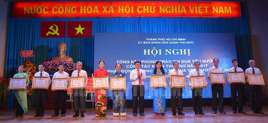 Ông Vương Văn Kính (ngoài cùng bên trái) được Bí thư Quận ủy Thủ Đức Nguyễn Mạnh Cường trao Bằng khen của UBND TPHCM.(Thanhuytphcm.vn) - Phường Hiệp Bình Chánh, quận Thủ Đức đang trong quá trình đô thị hóa nhanh, với địa hình có mạng lưới kênh rạch sông ngòi chằng chịt, thường xuyên ảnh hưởng bởi triều cường. Bên cạnh đó, cơ sở hạ tầng, kỹ thuật giao thông thủy lợi còn hạn chế so với tốc độ phát triển của địa phương, điều này đã phần nào ảnh hưởng đến đời sống của người dân.