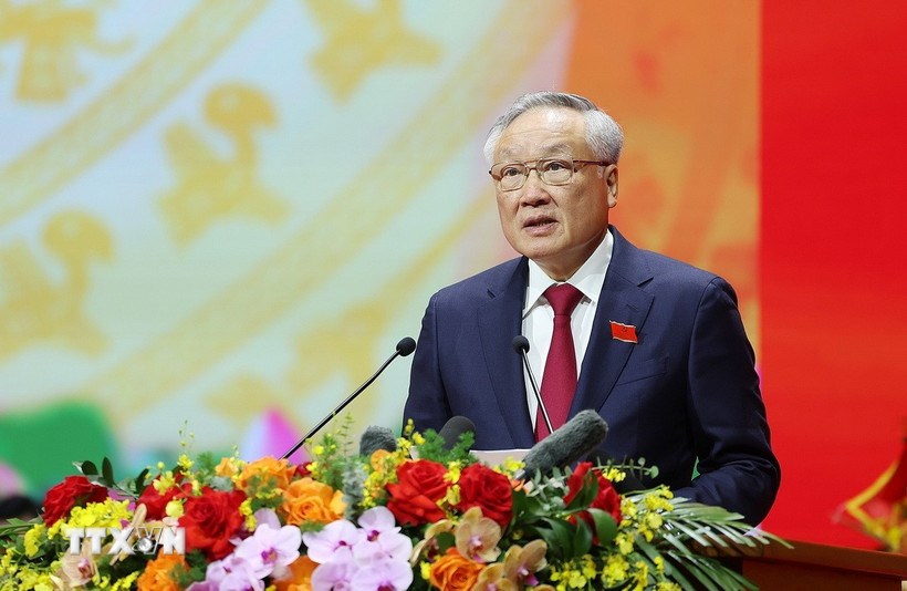Tổng Bí thư Tô Lâm cùng các đồng chí lãnh đạo, nguyên lãnh đạo Đảng và Nhà nước với các đại biểu. (Ảnh: TTXVN)Tốc độ tăng trưởng GDP bình quân đạt 10%/năm trở lên