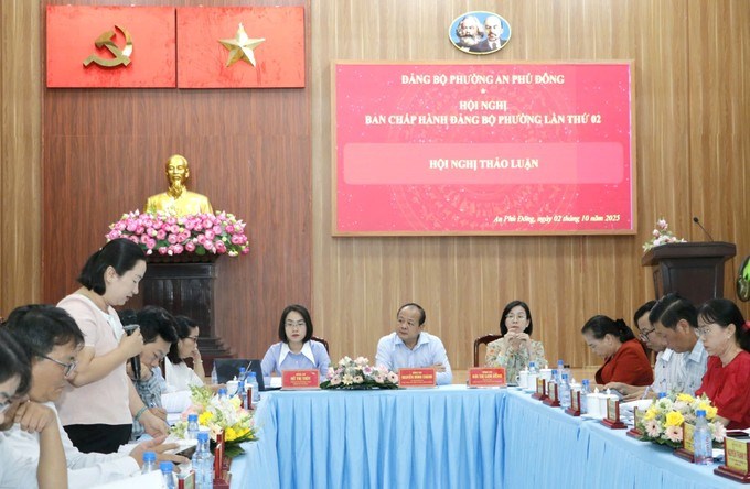 Quang cảnh hội nghịChiều 2/10, Đảng ủy phường An Phú Đông tổ chức Hội nghị Ban Chấp hành Đảng bộ phường lần thứ 2.