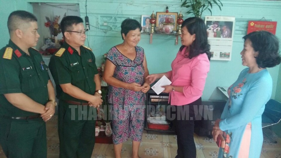 (Thanhuytphcm.vn) - Nhân ngày kỷ niệm 42 năm Ngày giải phóng miền Nam, thống nhất đất nước (30/4/1975 - 30/4/2017), chiều 28/4, đoàn đại biểu Quận ủy - HĐND - UBND - Ủy ban MTTQ Việt Nam - Ban chỉ huy quân sự Quận 1 do đồng chí Hoàng Thị Tố Nga, Phó Bí thư Thường trực Quận ủy Quận 1 dẫn đầu đã đến thăm và tặng quà cho gia đình bà Cao Thị Đẹp ngụ tại đường Lê Thị Riêng, phường Bến Thành Quận 1, là mẹ của chiến sĩ Nguyễn Ngọc Thiện nhập ngũ tháng 2/2016 đang công tác tại Đảo An Bang - Trường Sa.
