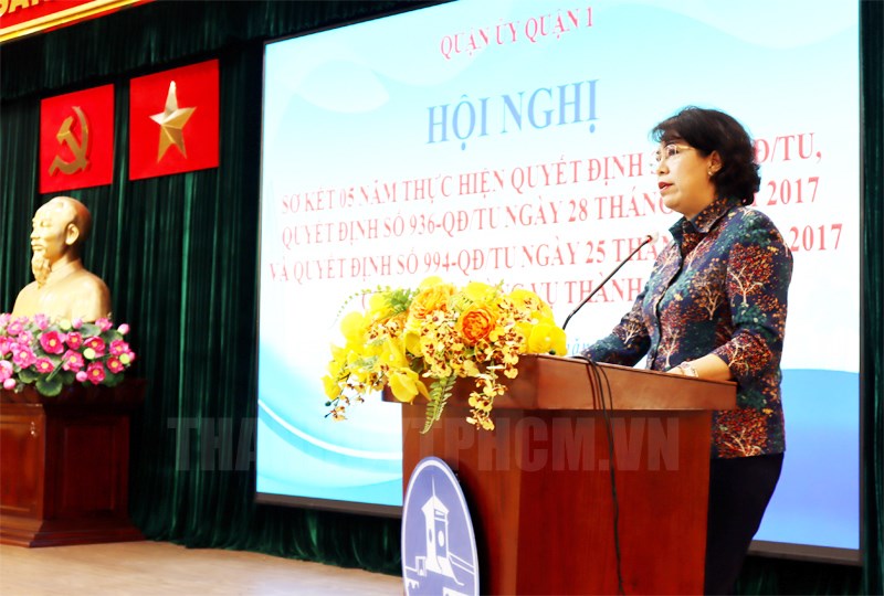 Qua 5 năm thực hiện các Quyết định số 935, 936, 994 của Ban Thường vụ Thành ủy đã phát huy tích cực quyền làm chủ của nhân dân, góp phần xây dựng Đảng, xây dựng chính quyền; nhiều kiến nghị, bức xúc chính đáng, tâm tư nguyện vọng và góp ý của các tầng lớp nhân dân được tiếp thu, giải quyết kịp thời, tạo mối quan hệ gần gũi, mật thiết giữa Đảng, chính quyền với nhân dân; xây dựng lòng tin của nhân dân vào sự lãnh đạo của Đảng, quản lý điều hành của Nhà nước, cán bộ, đảng viên, công chức, viên chức thể hiện tinh thần trách nhiệm, cầu thị, tận tụy với nhân dân. Cụ thể, đã tổ chức 24 cuộc triển khai quán triệt đến 3.910 lượt cán bộ, đảng viên, công chức, viên chức, chiến sĩ, đoàn viên, hội viên và nhân dân trên địa bàn; tuyên truyền các nội dung quyết định lên Trang tin điện tử của Quận ủy, UBND quận, Bản tin Quận 1, Trang cộng đồng Cột cờ Thủ Ngữ, Trang tin Đoàn Kết Quận 1...